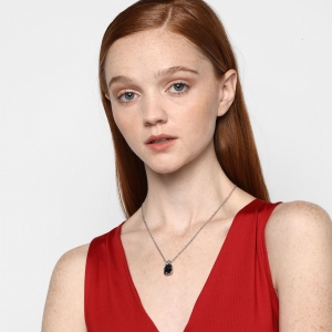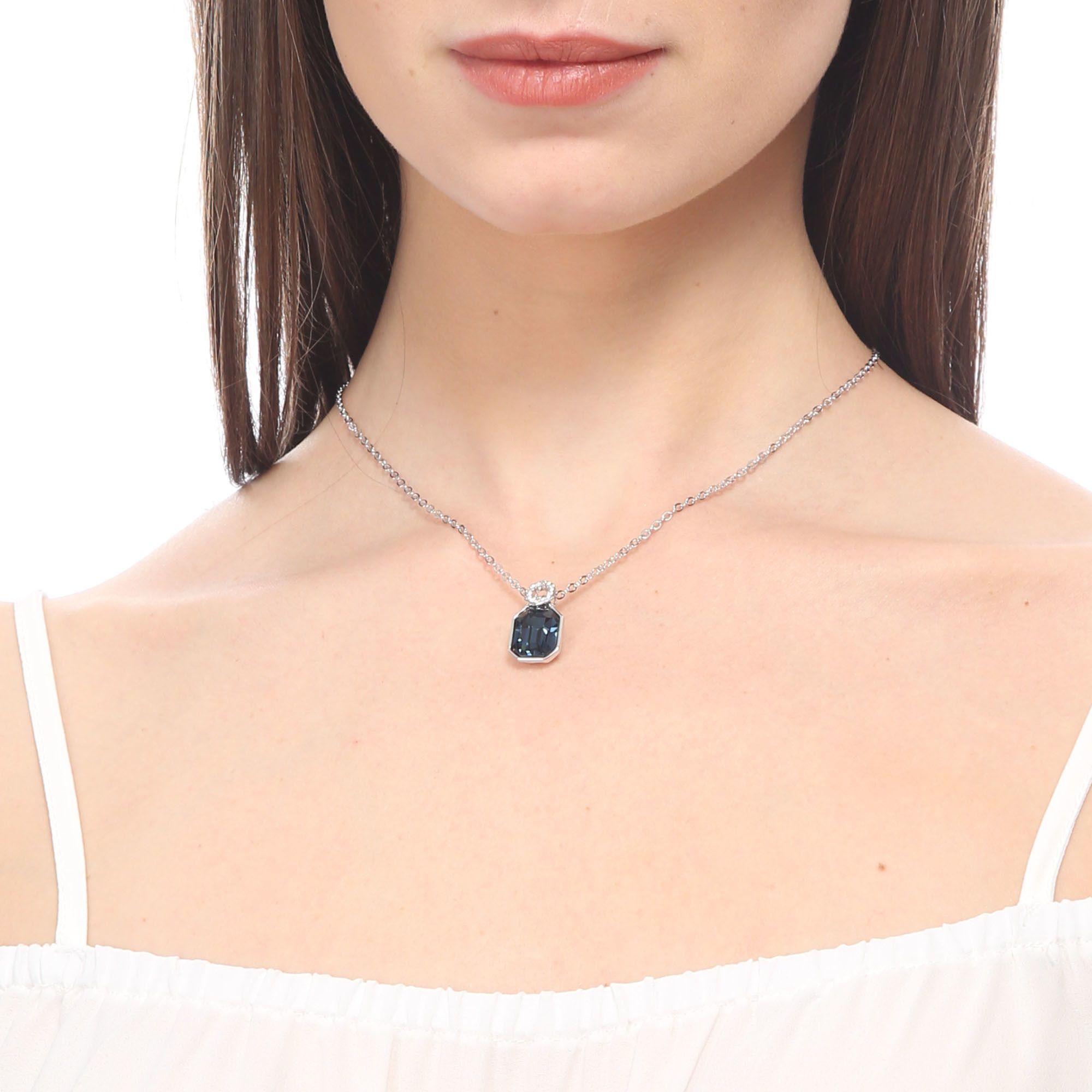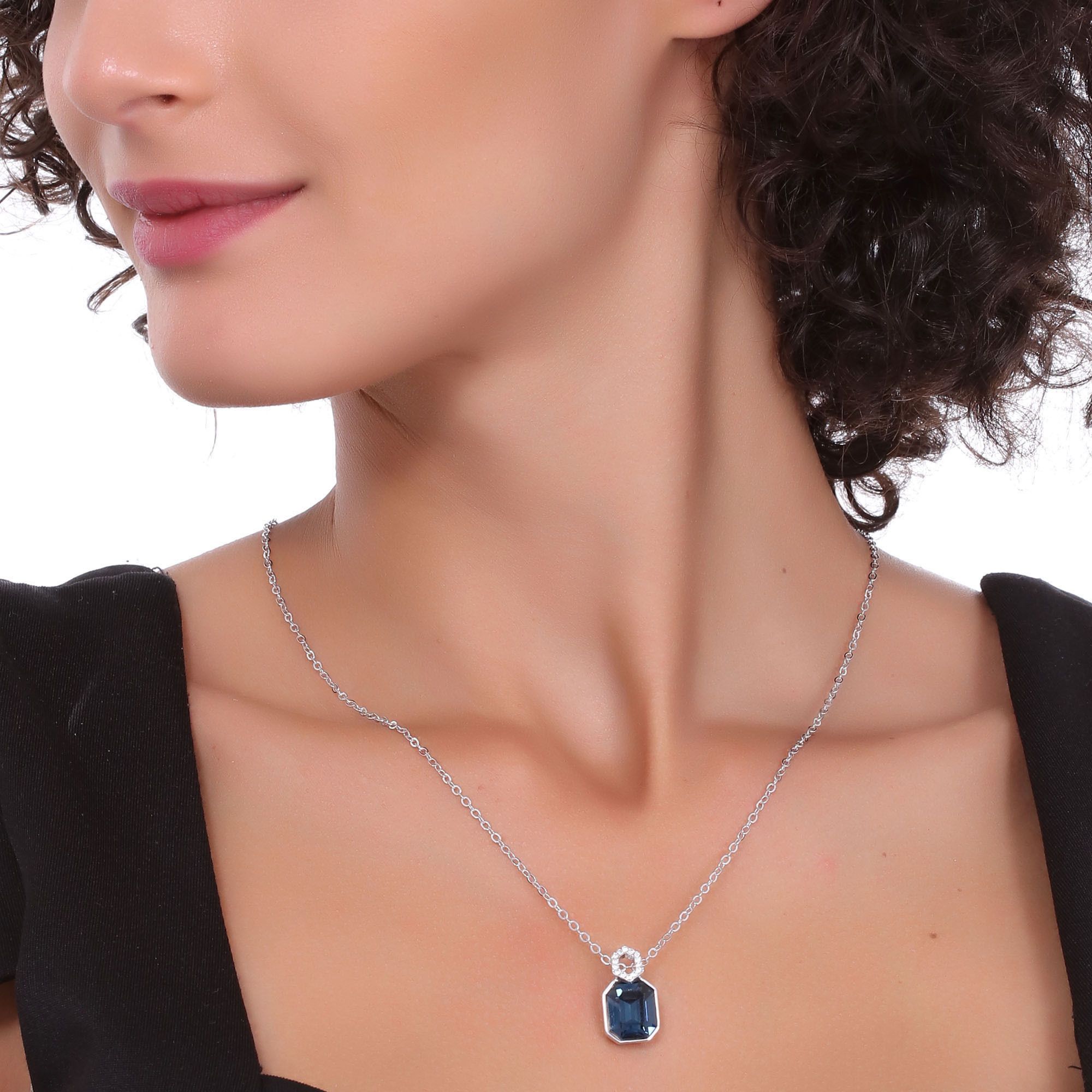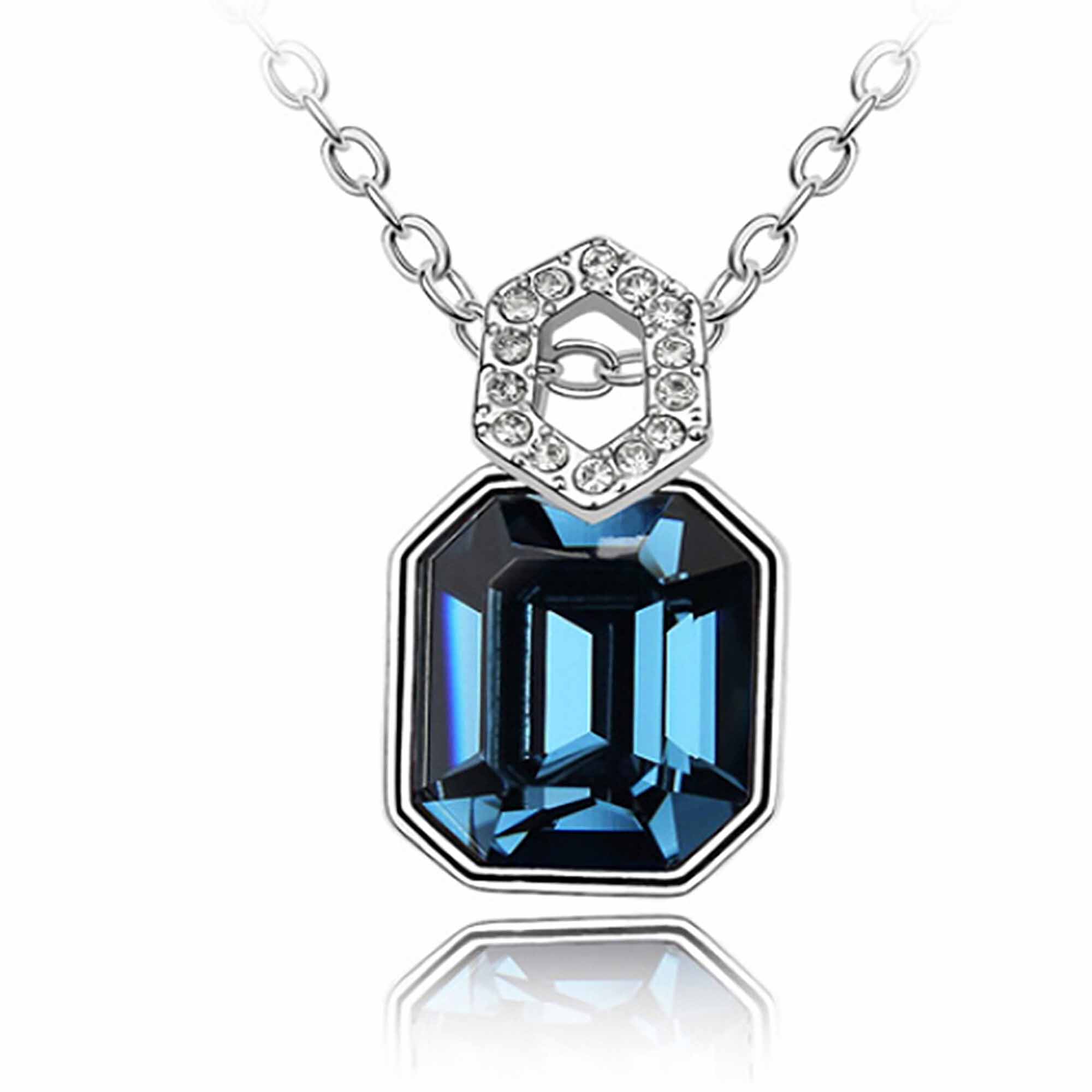 Dije con cadena en ba�o de oro blanco de 18 quilates, fino dise�o con incrustaci�n de cristales en color azul y blanco. Fabricado en una estructura de aleaci�n de platino con rodio sin n�quel 1. joyer�a Hipoalerg�nica. 2. Incluye cajita de joyer�a. 3. Garant�a de 30 d�as por defectos de fabrica.