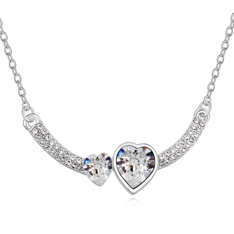 Collar en baño de oro blanco de 18 quilates, diseño de corazones con cristales blancos corte corazón e incrustaciones de cristales blancos.