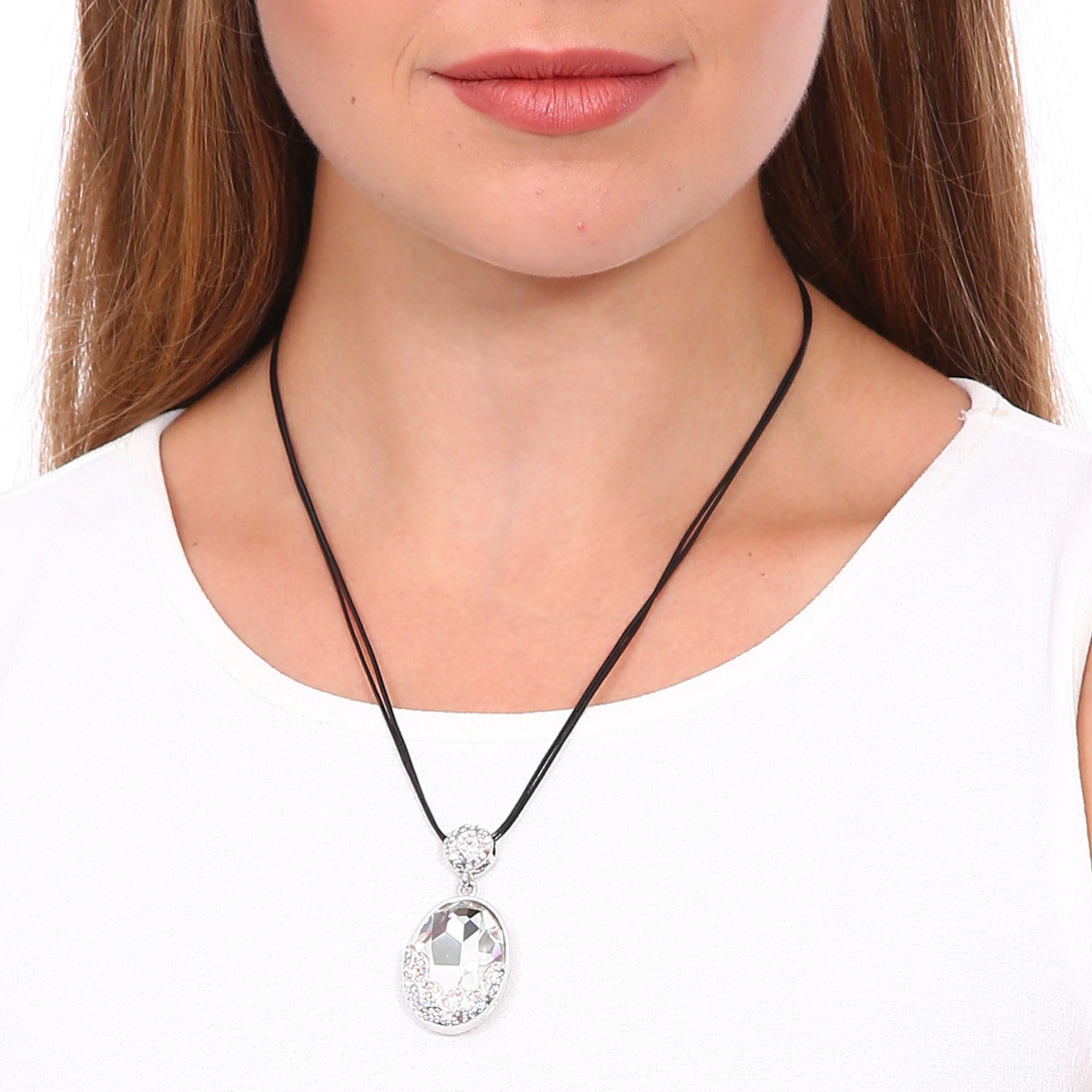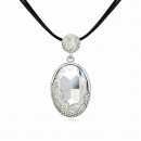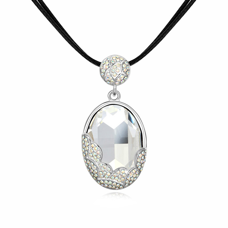 Lindo Collar en baño de oro blanco de 18 quilates, diseño de ovalo con incrustación de cristales en color blanco y tornasol. Fabricado en una estructura de aleación de platino con rodio sin níquel 1. joyería Hipoalergénica. 2. Incluye cajita de joyería. 3. Garantía de 30 días por defectos de fabrica.