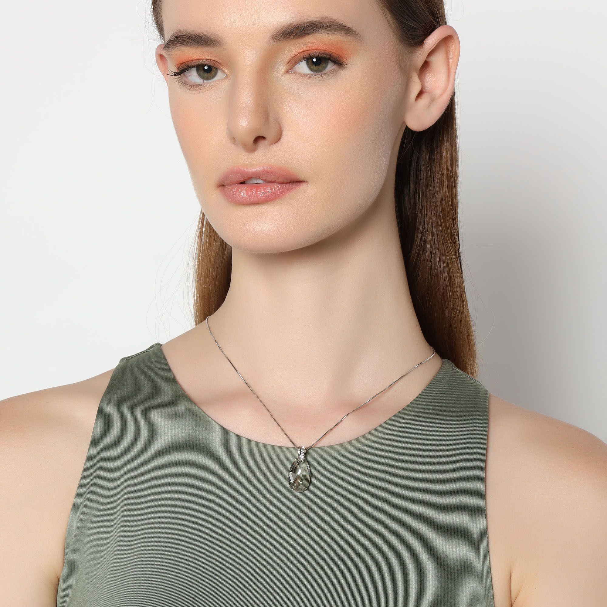 Lindo Dije en baño de oro blanco de 18 quilates con cristales en color blanco.