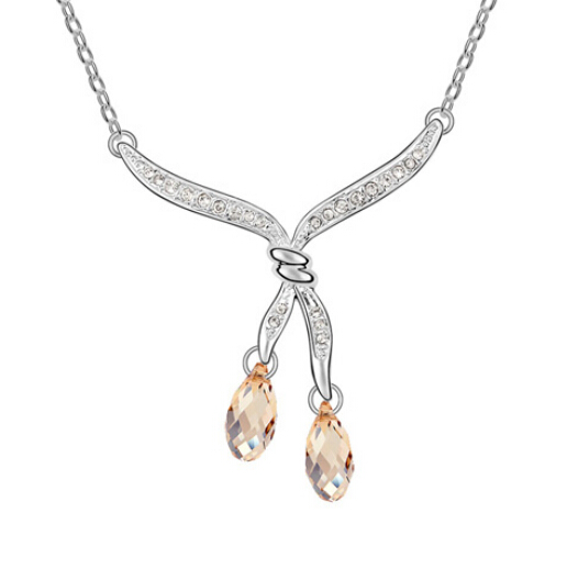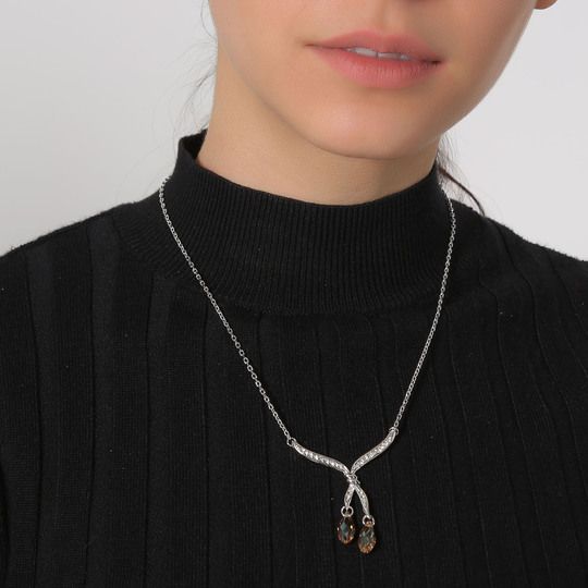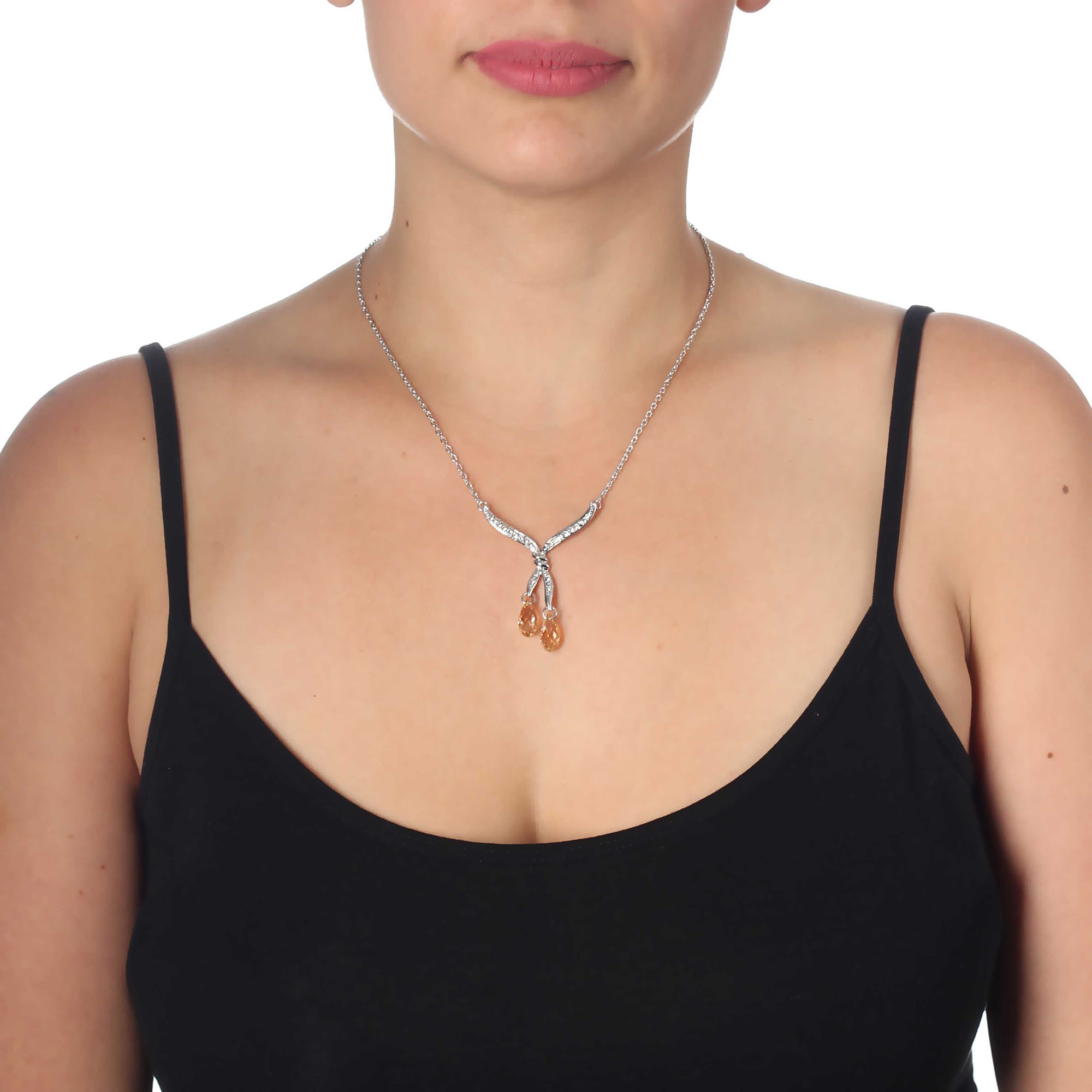 Collar en baño de oro blanco de 18 quilates, con cristales ámbar corte facetado e incrustaciones de cristales blancos.