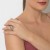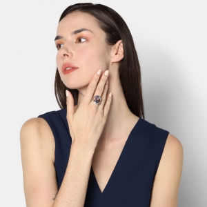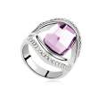Delicado anillo en baño de oro blanco de 18 quilates, diseño en forma almendrada, con cristal lila corte oval e incrustaciones de cristales blancos.