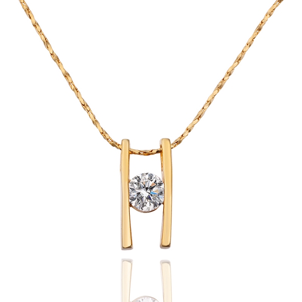 Elegante Dije en baño de oro amarillo de 18 quilates, con elegante diseño e incrustación de cristal en color blanco. Cuenta con una cadena de 40 cm, con extención de 5 cm. Fabricado en una estructura de aleación de platino con rodio sin níquel 1. joyería Hipoalergénica. 2. Incluye cajita de joyería. 3. Garantía de 30 días por defectos de fabrica.