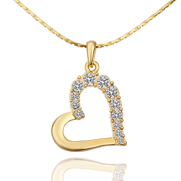Tierno Dije con cadena en baño de oro amarillo de 18 quilates, en forma de corazón con incrustación de cristales. Cadena de 40 cm con 5 cm de extesion. Fabricado en una estructura de aleación de platino con rodio sin níquel. 1. joyería Hipoalergénica. 2. Incluye cajita de joyería. 3. Garantía de 30 días por defectos de fabrica.