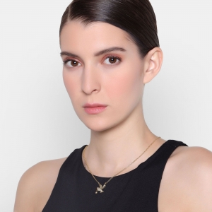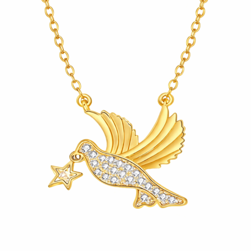 Collar en ba�o de oro amarillo de 18 quilates, dise�o de pajarito con incrustaci�n de cristales en color blanco. Fabricado en una estructura de aleaci�n de platino con rodio sin n�quel 1. joyer�a Hipoalerg�nica. 2. Incluye cajita de joyer�a. 3. Garant�a de 30 d�as por defectos de fabrica.
