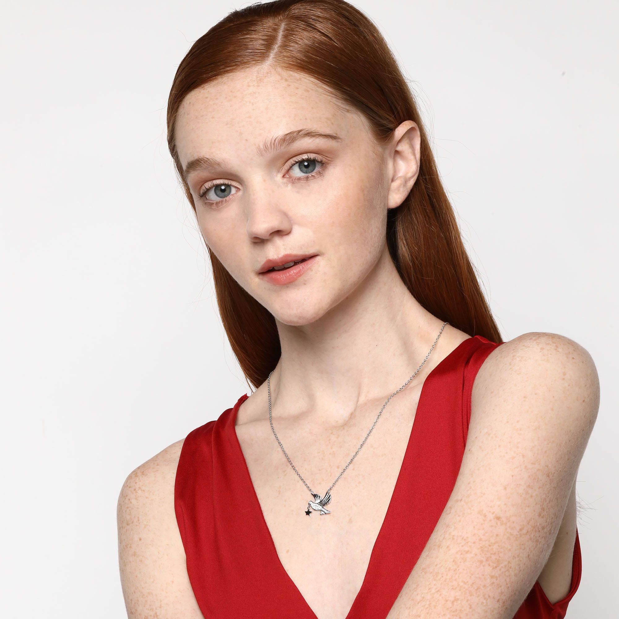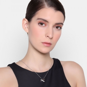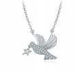 Collar en baño de oro blanco de 18 quilates, diseño de pajarito con incrustación de cristales en color blanco. Fabricado en una estructura de aleación de platino con rodio sin níquel 1. joyería Hipoalergénica. 2. Incluye cajita de joyería. 3. Garantía de 30 días por defectos de fabrica.