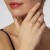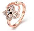 Delicado anillo en baño de oro rosa de 18 quilates, diseño de mariposas, con detalle en esmaltado color negro e incrustaciones de cristales blancos.