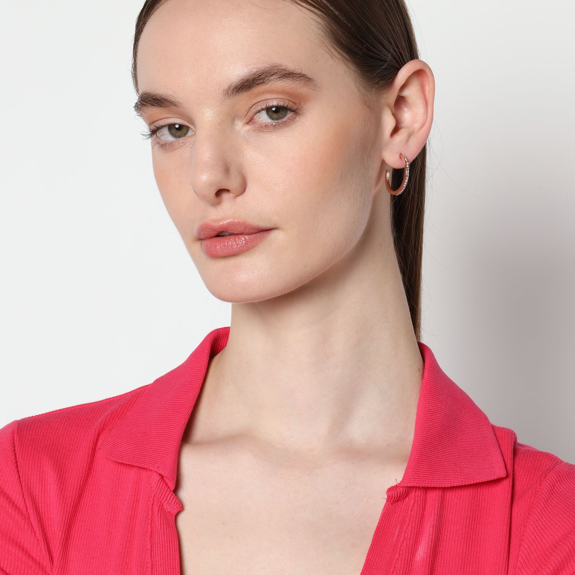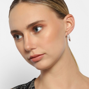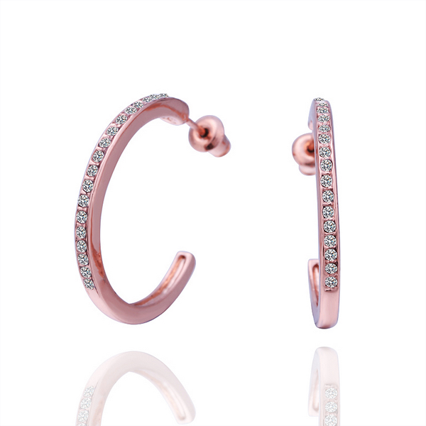 Arracadas en baño de oro rosa de 18 quilates, bello diseño, con incrustación de cristales en color blanco. Fabricado en una estructura de aleación de platino con rodio sin níquel