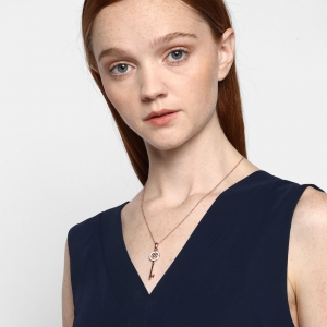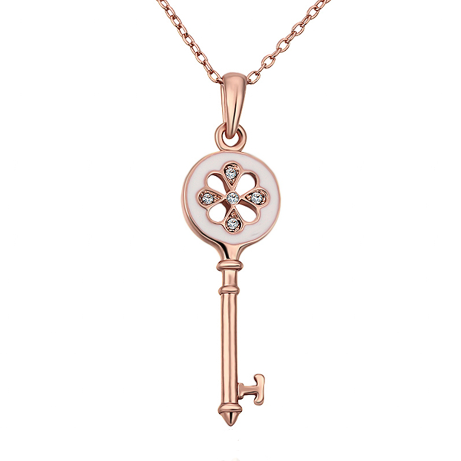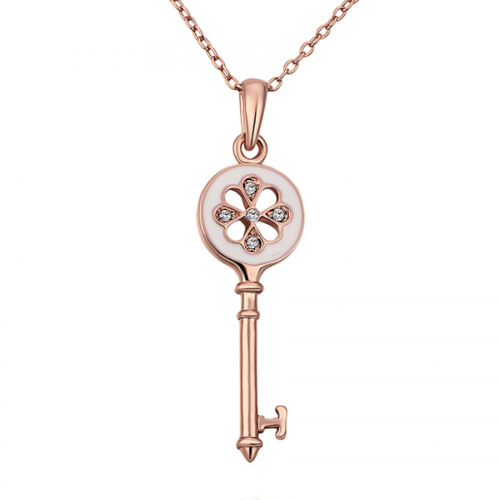 Dije en ba�o de oro rosa de 18 quilates, dise�o de llave con esmaltado blanco e incrustaci�n de cristales en color blanco.