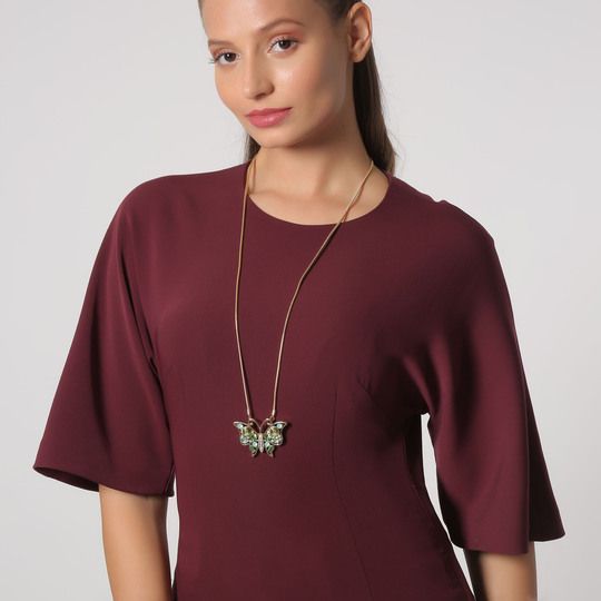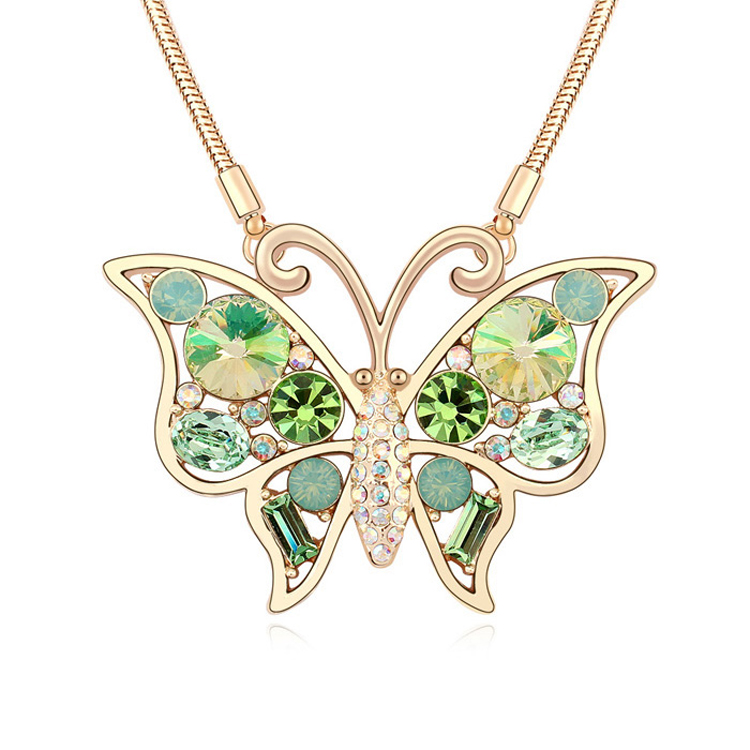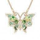 Collar en baño de oro amarillo de 18 quilates, diseño de mariposa con incrustación de cristales en tonos verdes y tonasol.