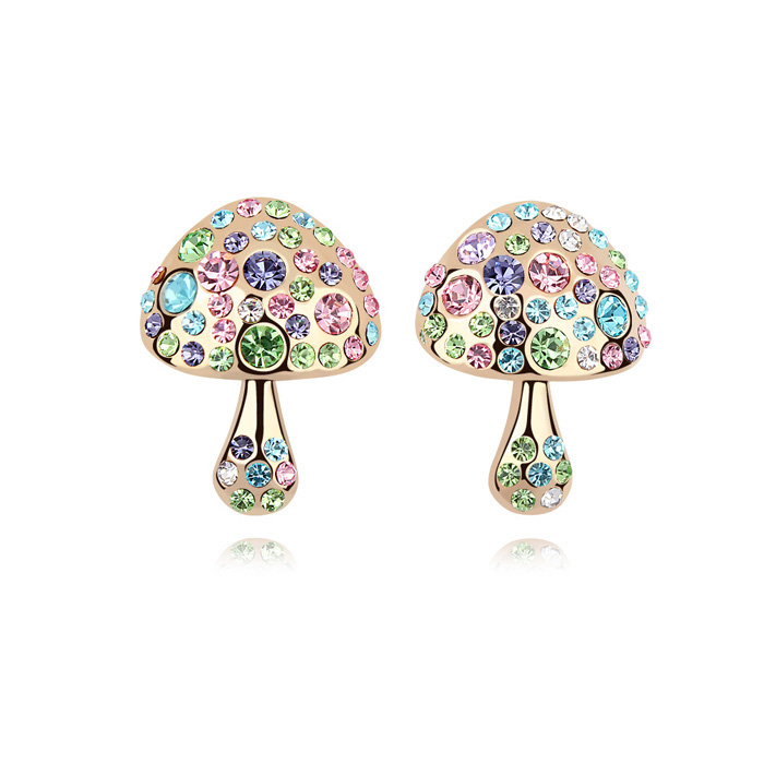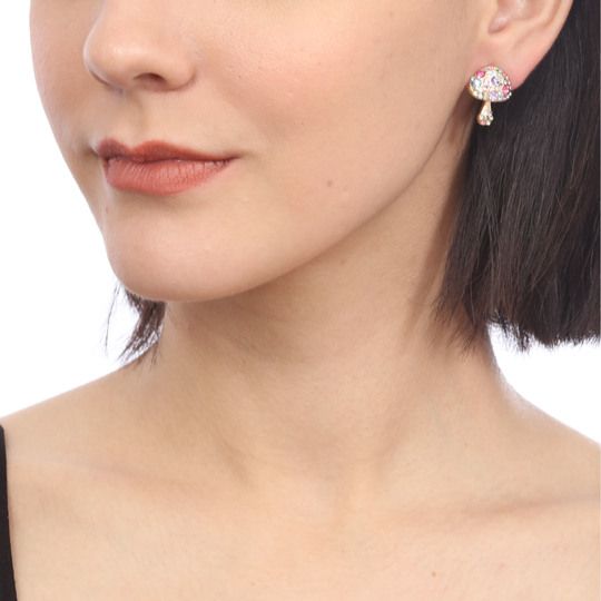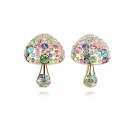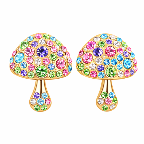 Lindos aretes en baño de oro amarillo de 18 quilates, diseño de hongo con incrustación de cristales en colores. Fabricado en una estructura de aleación de platino con rodio sin níquel