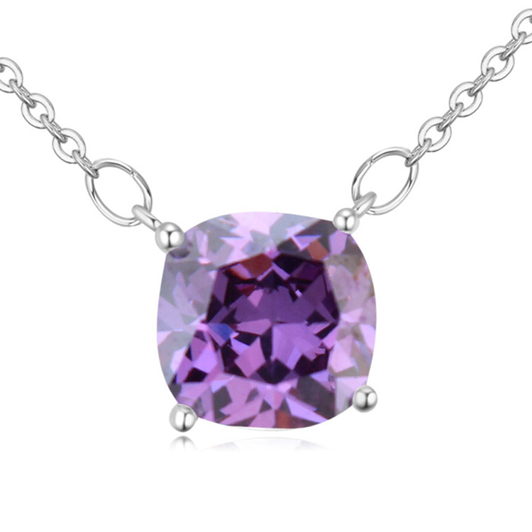 Hermoso Collar en baño de oro blanco de 18 quilates, fino diseño con incrustación de cristales en color morado. Fabricado en una estructura de aleación de platino con rodio sin níquel 1. joyería Hipoalergénica. 2. Incluye cajita de joyería. 3. Garantía de 30 días por defectos de fabrica.