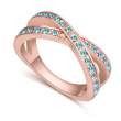 Anillo en baño de oro rosa de 18 quilates, fino diseño en forma de "X", con incrustaciones de cristales en color azul.