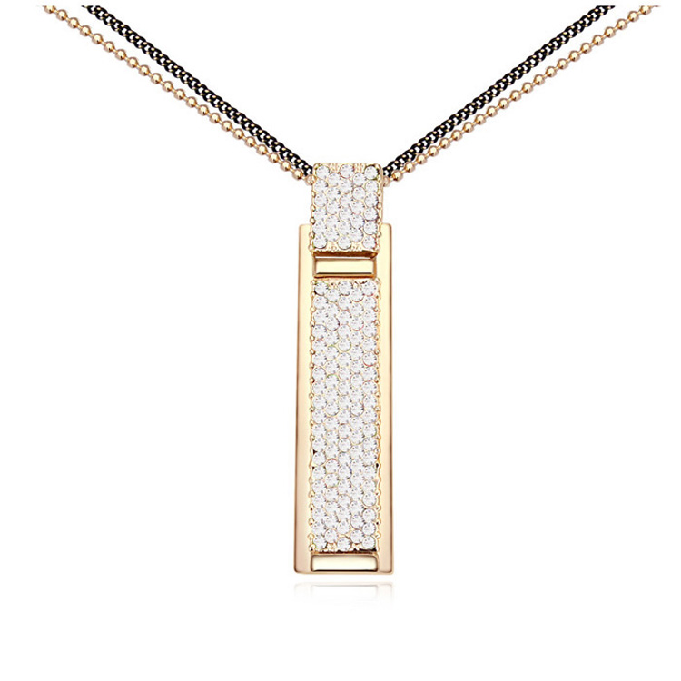 Collar en baño de oro amarillo de 18 quilates, diseño rectangular con incrustaciones de cristales blancos.