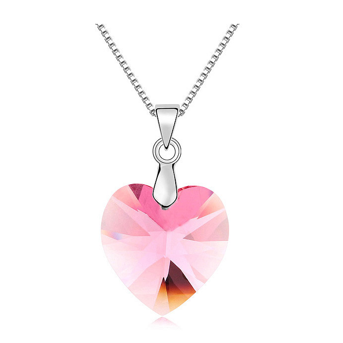 Precioso Dije en baño de oro blanco de 18 quilates, diseño de corazón de cristal en color rosa.