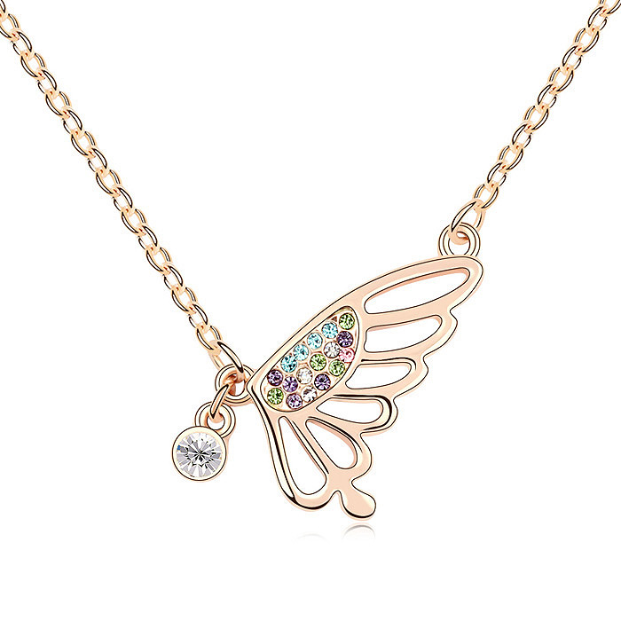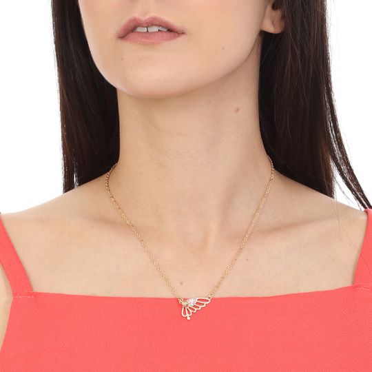 Elegante Collar con cadena en baño de oro amarillo de 18 quilates, con diseño de ala con incrustación de cristales en colores. Fabricado en una estructura de aleación de platino con rodio sin níquel 1. joyería Hipoalergénica. 2. Incluye cajita de joyería. 3. Garantía de 30 días por defectos de fabrica.