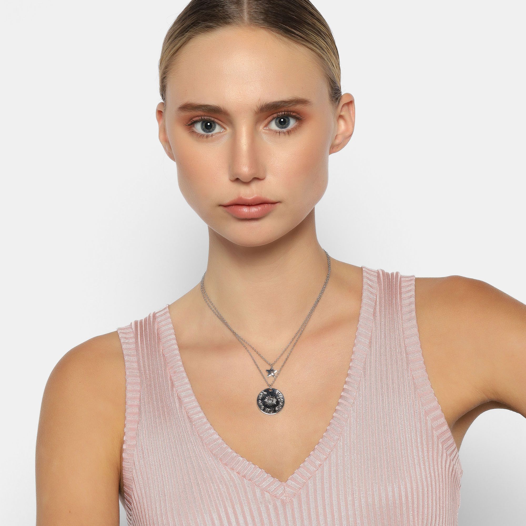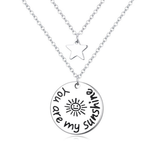 Collar en ba�o de de oro blanco de 18 quilates con grabado de frase You are my sunshine
