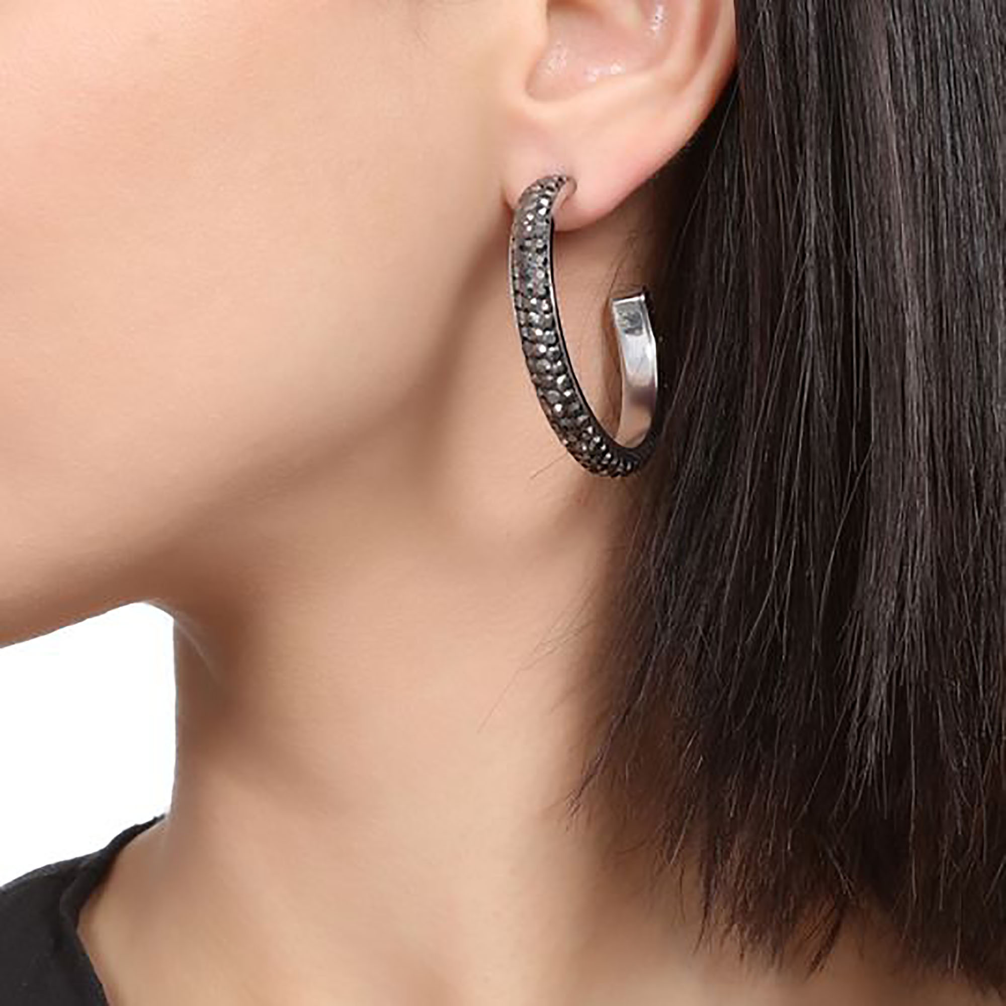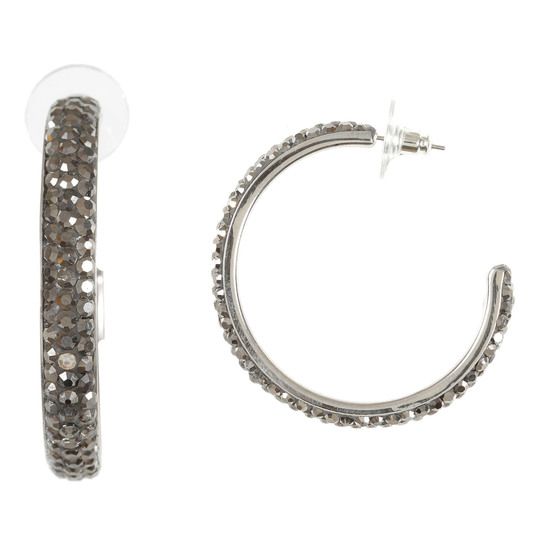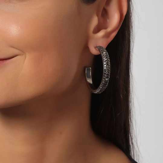 Arracadas en acero inoxidable, con fondo gris e incrustación de cristales en color oxford.