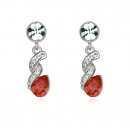 Elegantes aretes en baño de oro blanco de 18 quilates, diseño de espiral, con cristal rojo corte pera e incrustación de cristales blancos. Fabricado en una estructura de aleación de platino con rodio sin níquel