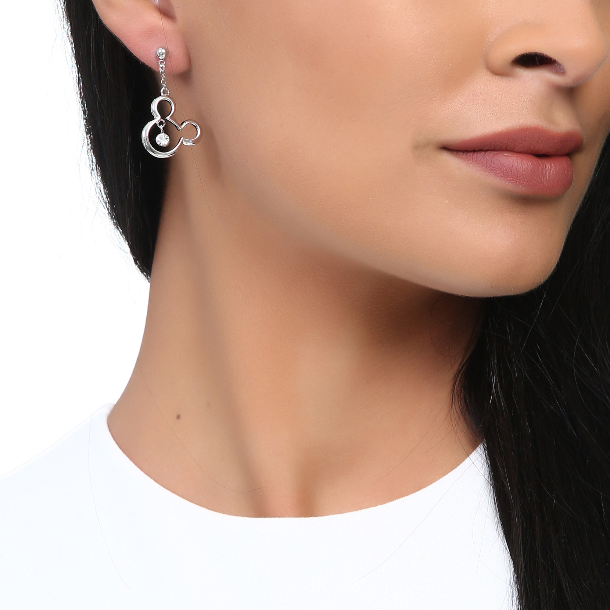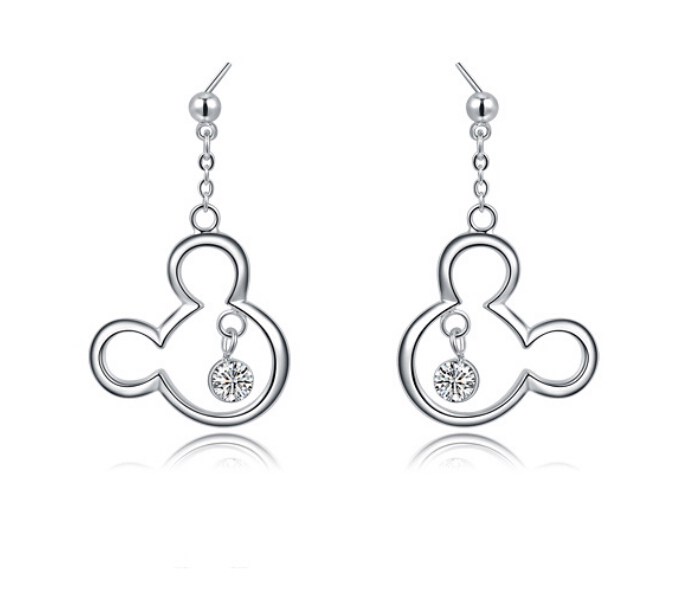 Lindos aretes en baño de oro blanco de 18 quilates, tierna figura, con incrustación de cristal en color blanco. Fabricado en una estructura de aleación de platino con rodio sin níquel