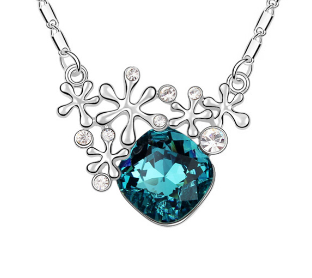 Elegante Dije en baño de oro blanco de 18 quilates, diseño con incrustación de cristales en color blanco y azul fuerte. Fabricado en una estructura de aleación de platino con rodio sin níquel 1. joyería Hipoalergénica. 2. Incluye cajita de joyería. 3. Garantía de 30 días por defectos de fabrica.
