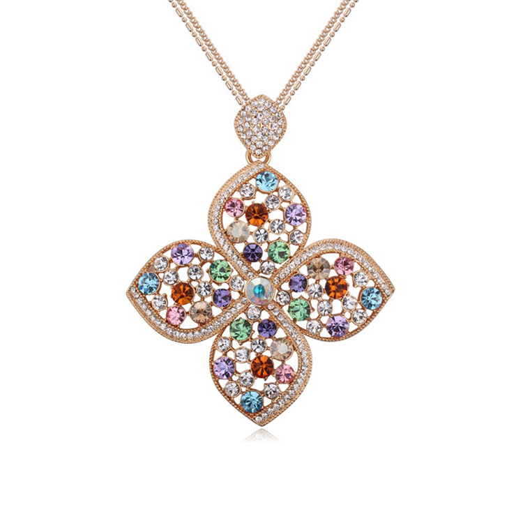Collar en baño de oro amarillo de 18 quilates, diseño de flor con cristales multicolor.