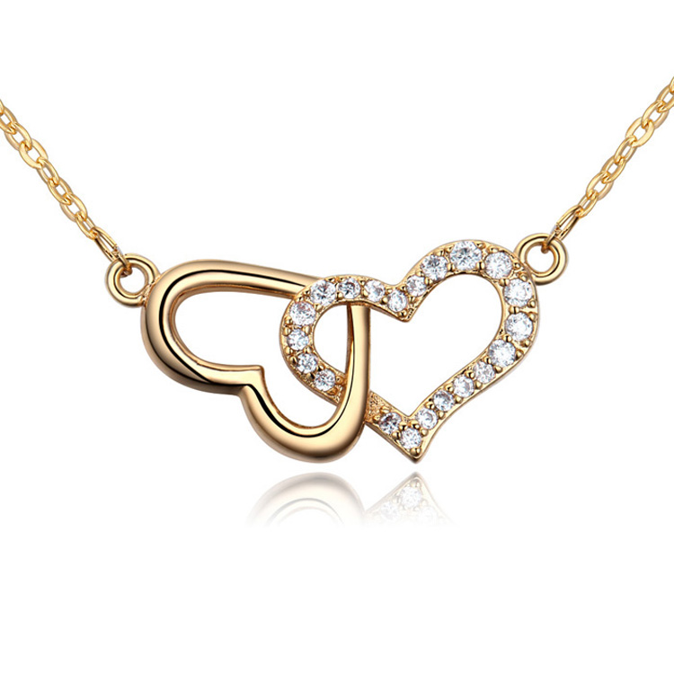 Collar en baño de oro amarillo de 18 quilates, diseño de corazones entrelasados con incrustaciones de cristales blancos.