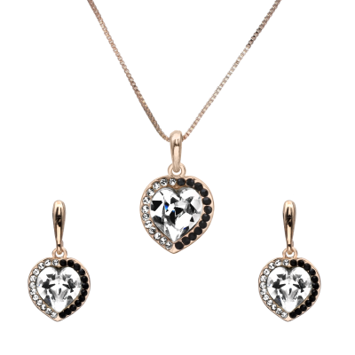 Exquisito conjunto de dije con cadena y aretes en baño de oro rosa de 18 quilates, diseño de corazones con