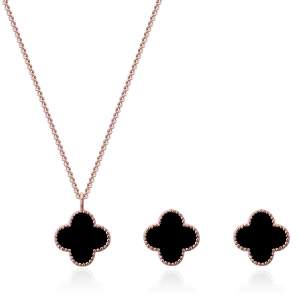 Bello conjunto de dije con cadena y aretes en baño de oro rosa de 18 quilates, diseño de flores caladas