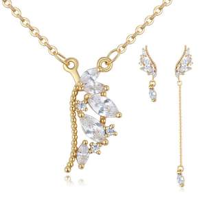 Exclusivo conjunto de dije con cadena y aretes en baño de oro amarillo de 18 quilates, diseño de alas, con