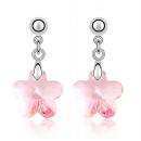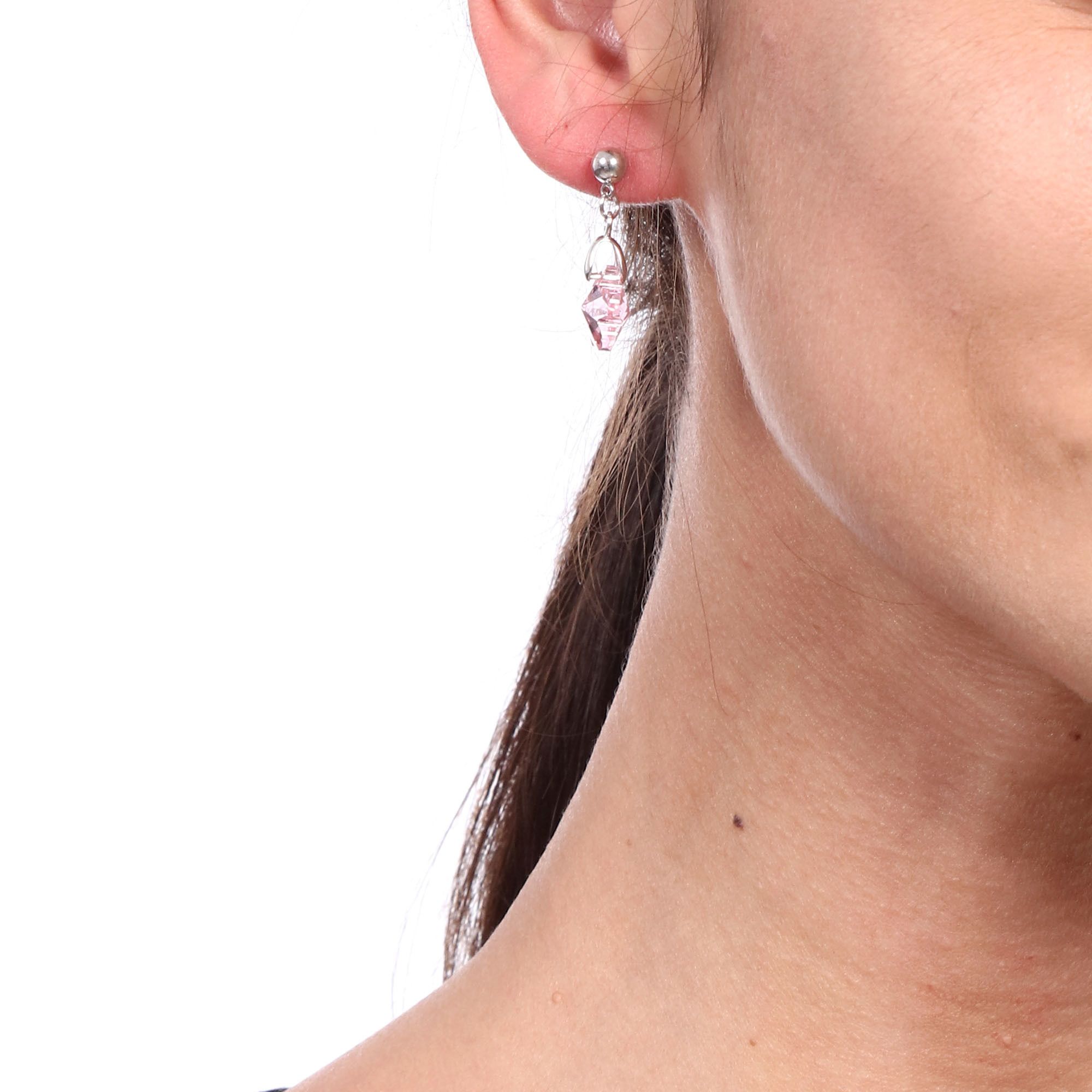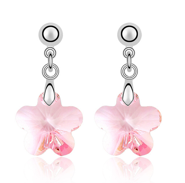 Lindos aretes en baño de oro blanco de 18 quilates, diseño de flor, en cristal color rosa y detalles en plateado. Fabricado en una estructura de aleación de platino con rodio sin níquel