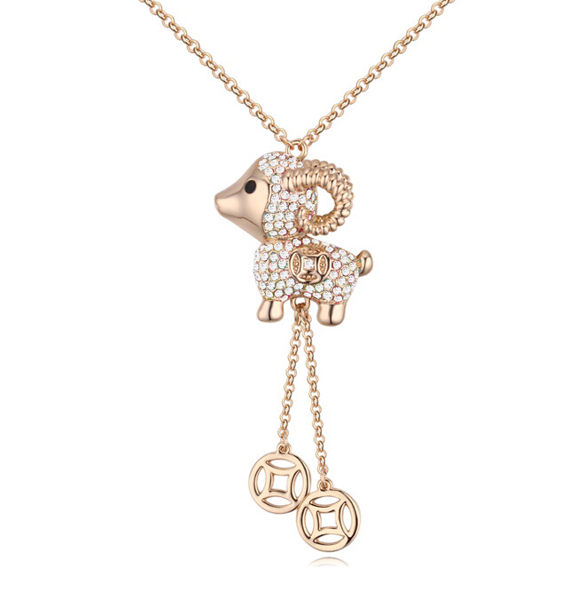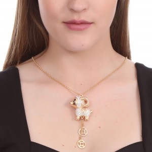 Collar en baño de oro amarillo de 18 quilates, diseño de borreguito con incrustaciones de cristales blancos.
