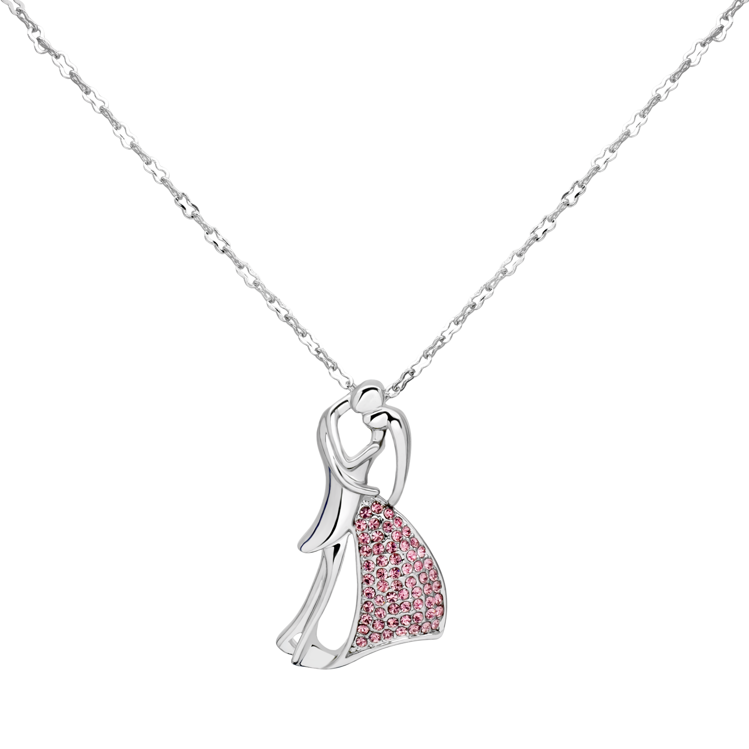 Dije con cadena en baño de oro blanco de 18 quilates, fino diseño con incrustación de cristales en color blanco y rosa. Fabricado en una estructura de aleación de platino con rodio sin níquel 1. joyería Hipoalergénica. 2. Incluye cajita de joyería. 3. Garantía de 30 días por defectos de fabrica.
