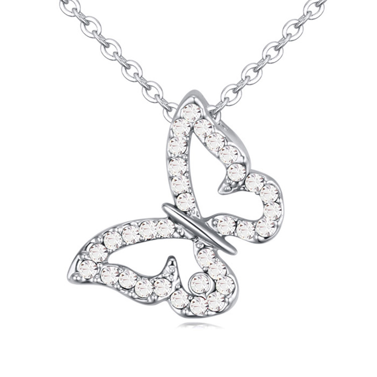 Lindo dije en baño de oro blanco de 18 quilates, diseño de mariposa con incrustaciones de cristales de color blanco.