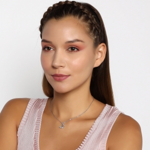 Lindo Dije en baño de oro blanco de 18 quilates, diseño de mariposa con incrustación de cristales en color ámbar