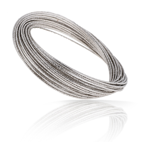 Brazalete en baño de oro blanco de 18 quilates, elegante diseño, con finos aros en acabado carbide.