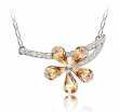 Hermoso Collar en baño de oro blanco de 18 quilates, diseño de flor con detalle con incrustación de cristal en color blanco y ámbar Fabricado en una estructura de aleación de platino con rodio sin níquel 1. joyería Hipoalergénica. 2. Incluye cajita de joyería. 3. Garantía de 30 días por defectos de fabrica.