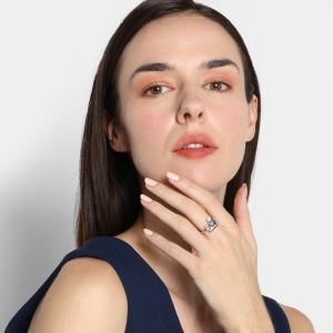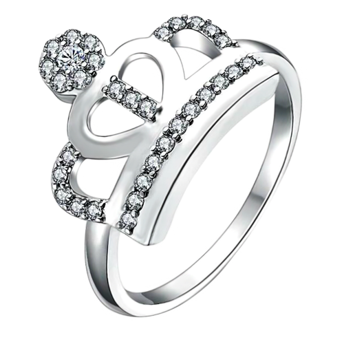 Anillo en baño de oro blanco de 18 quilates, diseño de corona, con incrustación de cristales en color blanco.