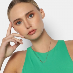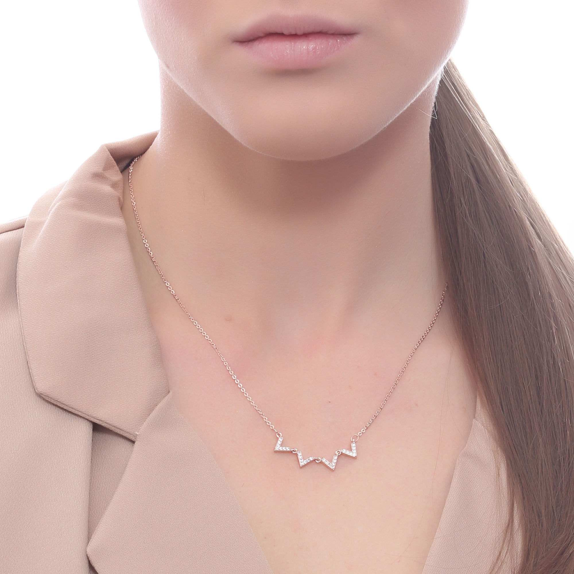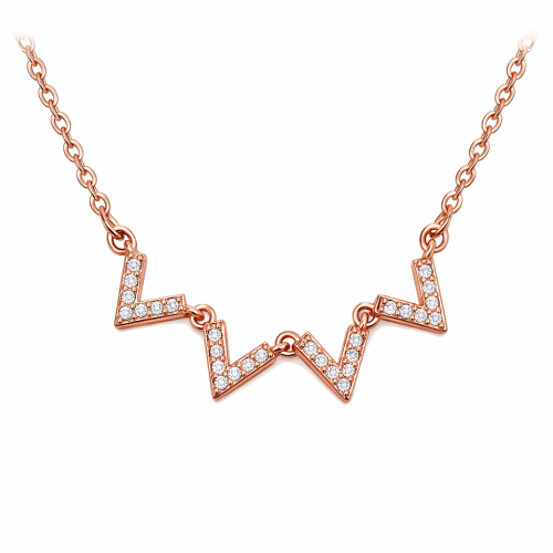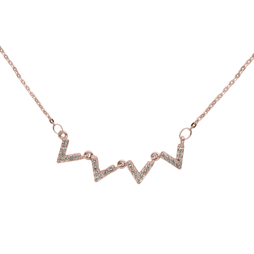 Collar en baño de oro rosa de 18 quilates, fino diseño con incrustación de cristales en color blanco. Fabricado en una estructura de aleación de platino con rodio sin níquel 1. joyería Hipoalergénica. 2. Incluye cajita de joyería. 3. Garantía de 30 días por defectos de fabrica.