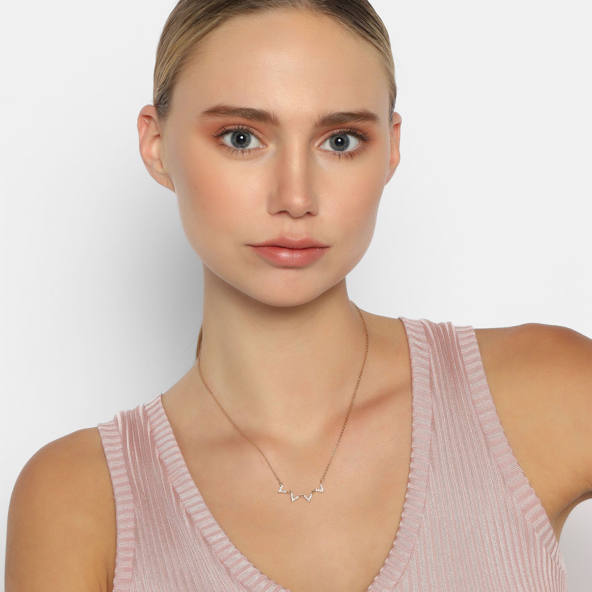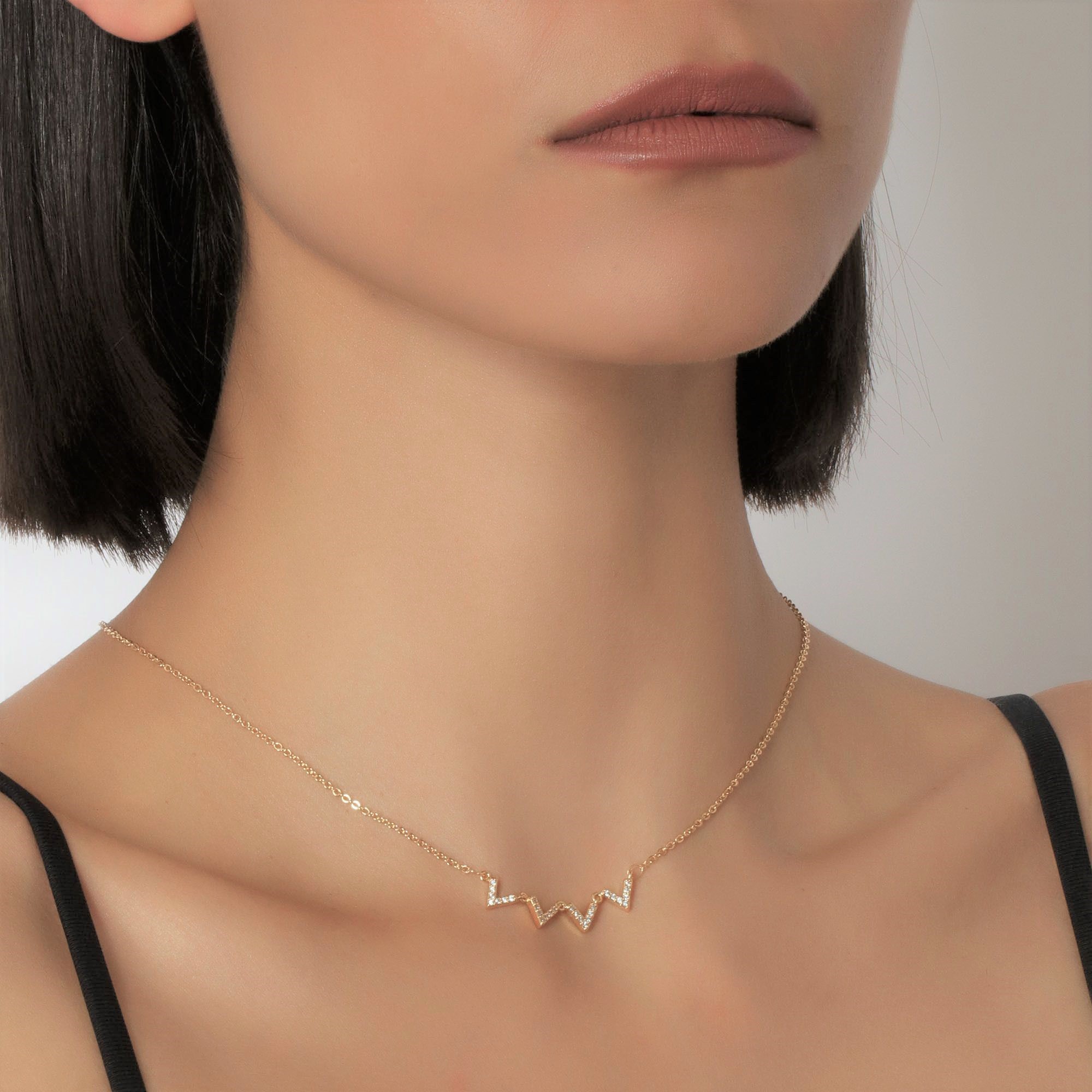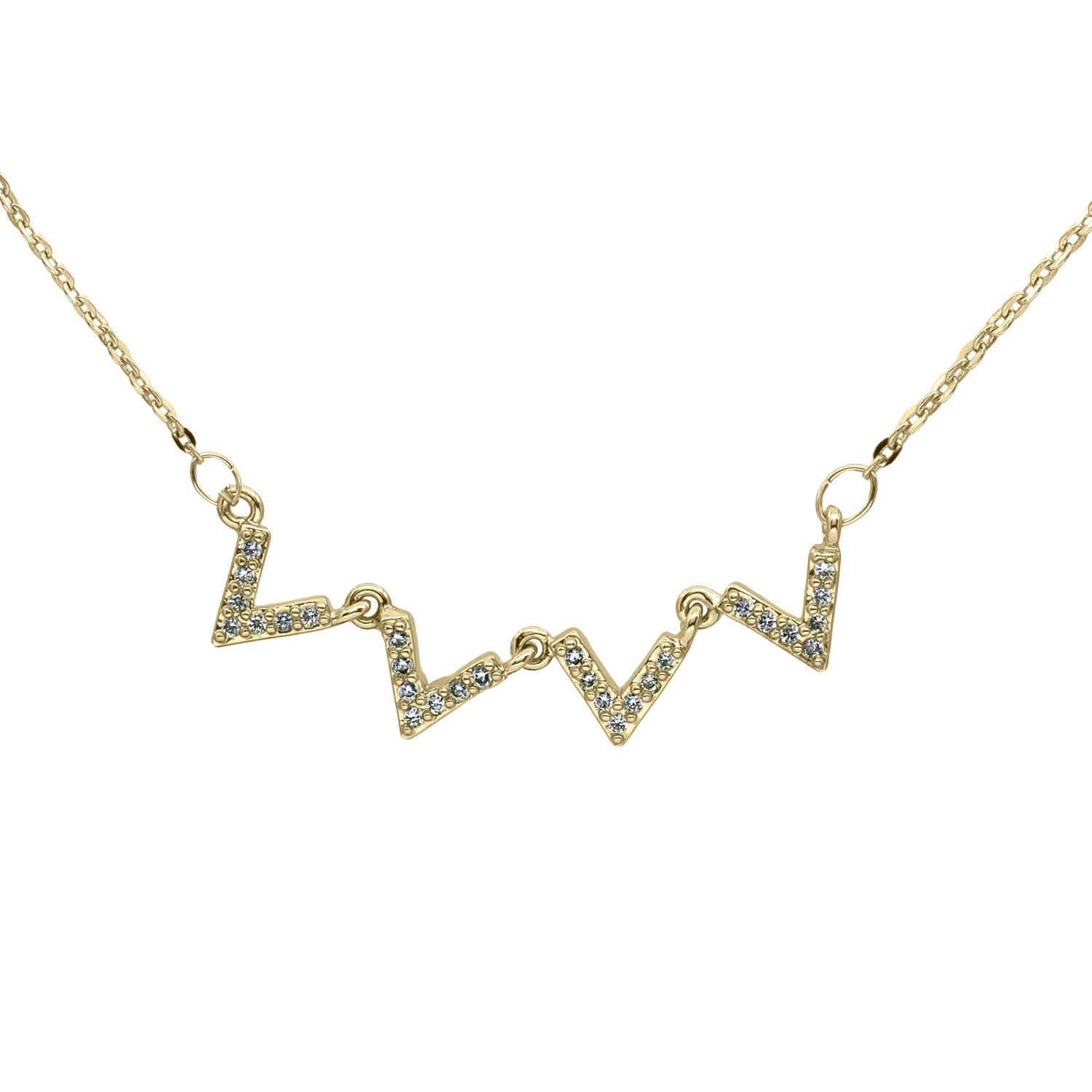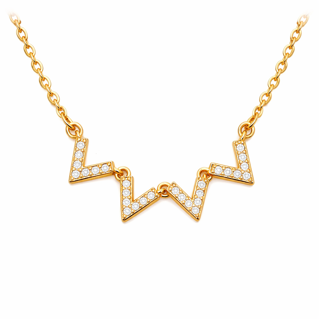 Collar en baño de oro amarillo de 18 quilates, fino diseño con incrustación de cristales en color blanco. Fabricado en una estructura de aleación de platino con rodio sin níquel 1. joyería Hipoalergénica. 2. Incluye cajita de joyería. 3. Garantía de 30 días por defectos de fabrica.