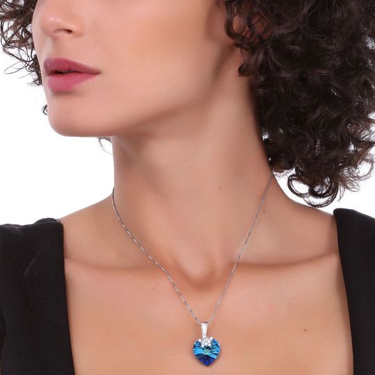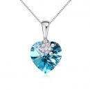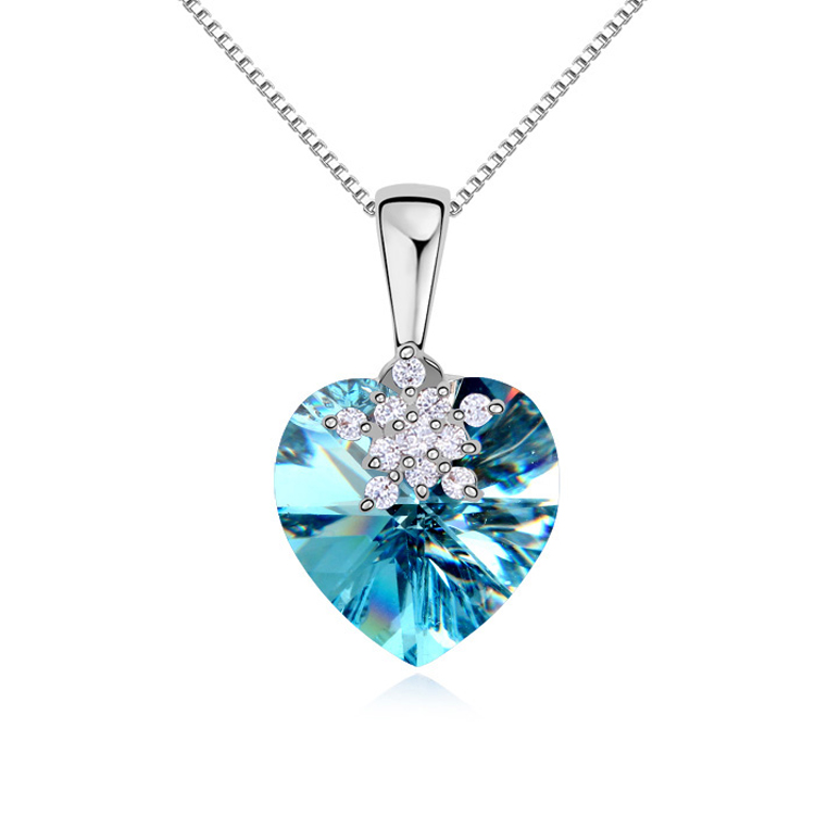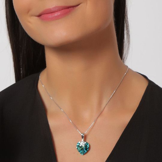 Elegante Dije en baño de oro blanco de 18 quilates, diseño de corazón de cristal en color azul turquesa y detalles de pequeños cristales blancos. Cuenta con una cadena de 40 cm, con extención de 5 cm. Fabricado en una estructura de aleación de platino con rodio sin níquel. 1. joyería Hipoalergénica. 2. Incluye cajita de joyería. 3. Garantía de 30 días por defectos de fabrica.