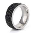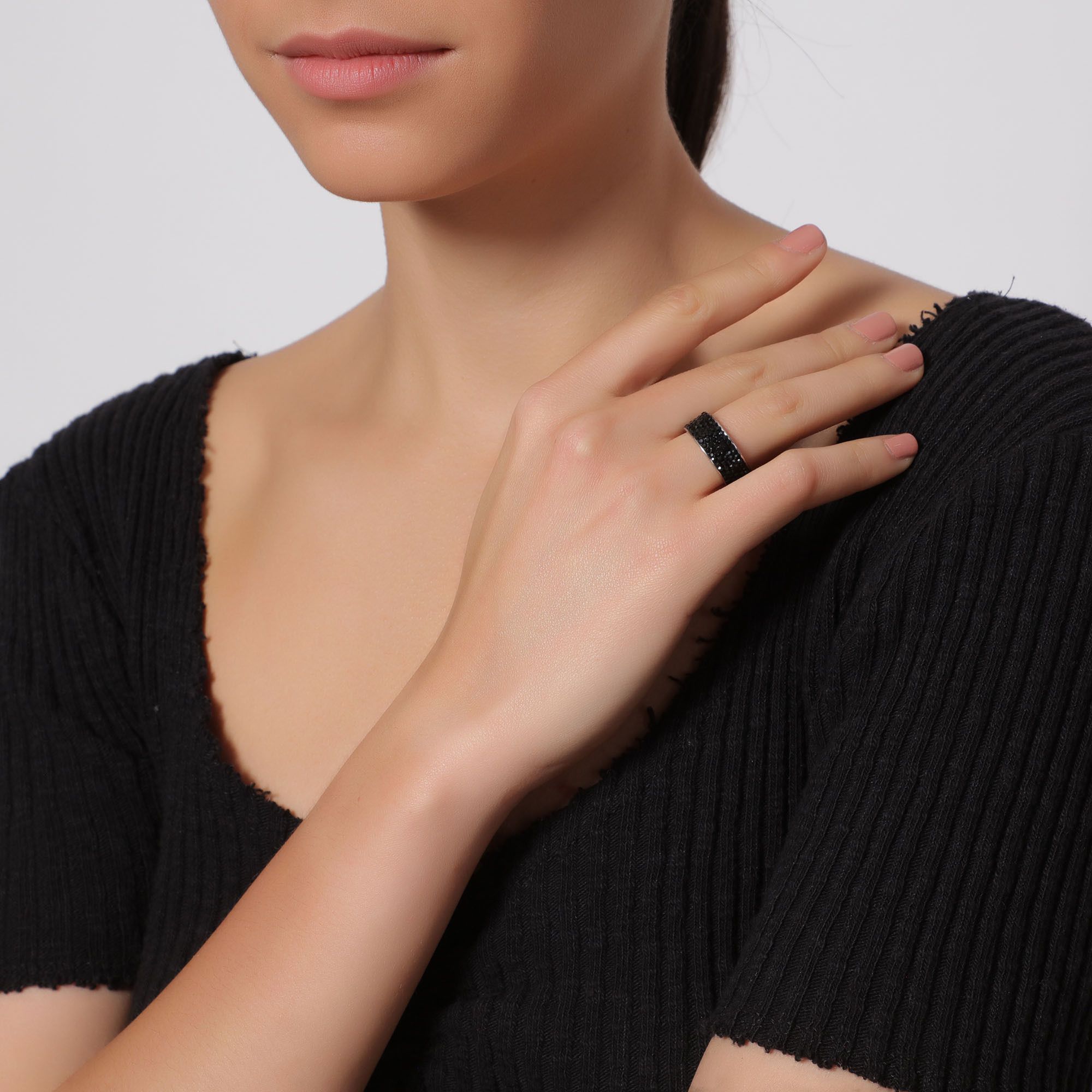 Anillo en baño de oro blanco de 18 quilates, sofisticado diseño, con incrustaciones de cristales en color negro.