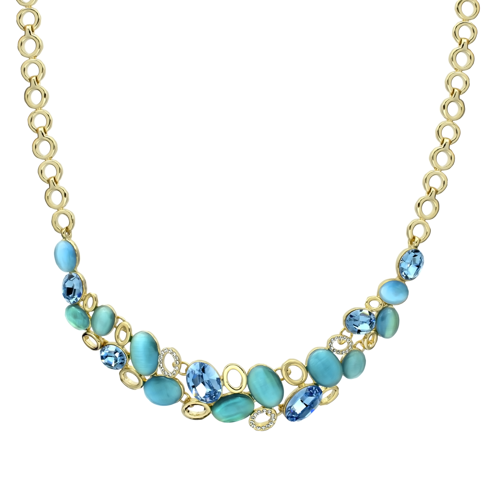 Hermoso collar en ba�o oro amarillo de 18 quilates, elegante dise�o con incrustaci�nes de cristales en color azul, blanco y tornasol. Fabricado una estructura de aleaci�n de platino con rodio sin n�quel. 1. Joyer�a hipoalerg�nica. 2. Incluye cajita de joyer�a. 3. Garant�a de 30 d�as por defecto de fabrica.