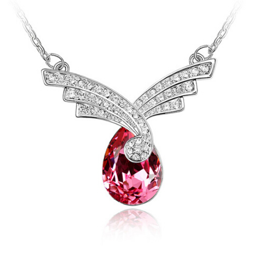 Collar en baño de oro banco de 18 quilates, fino diseño con incrustación de cristales en color blanco y rosa. Fabricado en una estructura de aleación de platino con rodio sin níquel 1. joyería Hipoalergénica. 2. Incluye cajita de joyería. 3. Garantía de 30 días por defectos de fabrica.