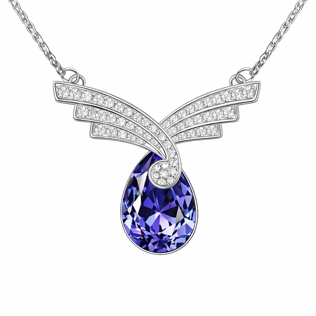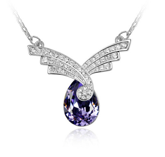 Collar en baño de oro banco de 18 quilates, fino diseño con incrustación de cristales en color blanco y morado. Fabricado en una estructura de aleación de platino con rodio sin níquel 1. joyería Hipoalergénica. 2. Incluye cajita de joyería. 3. Garantía de 30 días por defectos de fabrica.