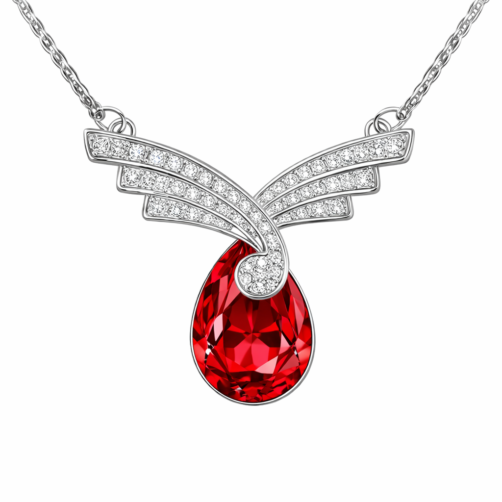 Collar en baño de oro banco de 18 quilates, fino diseño con incrustación de cristales en color blanco y rojo. Fabricado en una estructura de aleación de platino con rodio sin níquel 1. joyería Hipoalergénica. 2. Incluye cajita de joyería. 3. Garantía de 30 días por defectos de fabrica.