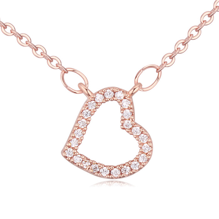 Elegante Collar con fino diseño de corazón en baño de oro rosa de 18 quilates, con detalles de incrustación de cristales en color blanco. Fabricado en una estructura de aleación de platino con rodio sin níquel 1. joyería Hipoalergénica. 2. Incluye cajita de joyería. 3. Garantía de 30 días por defectos de fabrica.