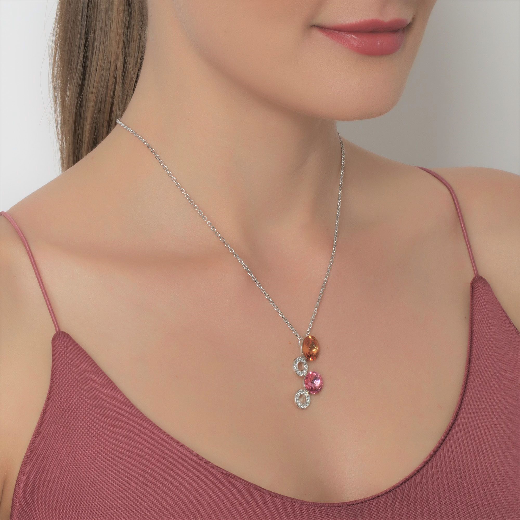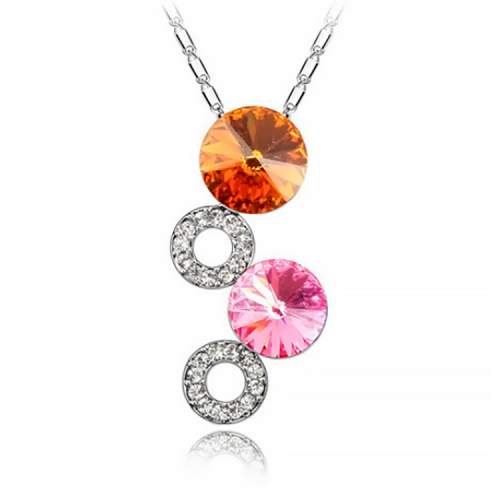 Precioso Collar en baño de oro blanco de 18 quilates, diseño de círculos con incrustación de cristales en color amarillo y rosa. Fabricado en una estructura de aleación de platino con rodio sin níquel 1. joyería Hipoalergénica. 2. Incluye cajita de joyería. 3. Garantía de 30 días por defectos de fabrica.