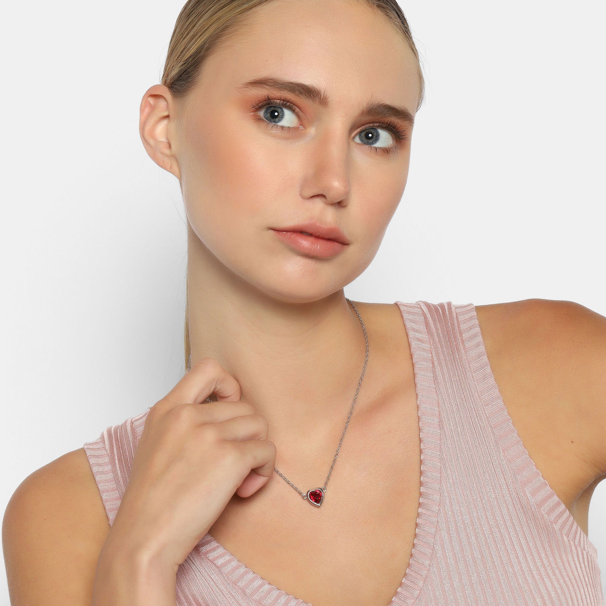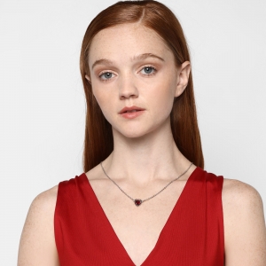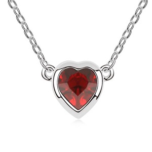Hermoso Collar en ba�o de oro blanco de 18 quilates, dise�o de coraz�n con cristal en color rojo.