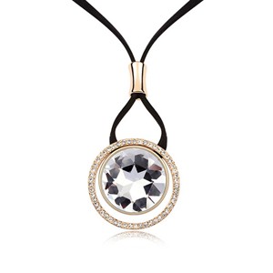 Collar en baño de oro rosa de 18 quilates, diseño de círculo cristal colo humo corte redondo e incrustaciones de cristales blancos.